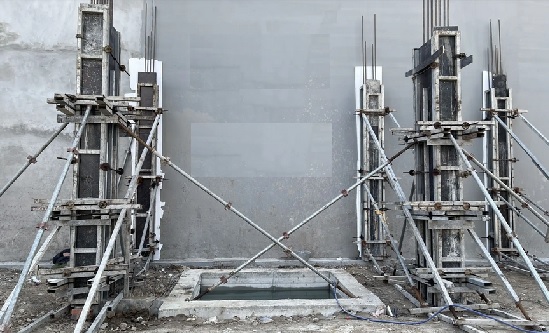 Định vị và gia cố: Xác định đúng vị trí, độ thẳng đứng bằng dây dọi hoặc máy laser. Dùng cây chống xiên, chống ngang và tyren, gông để cố định ván khuôn.