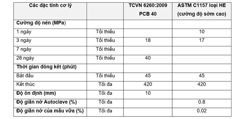 Tiêu chuẩn TCVN và ASTM sử dụng các phương pháp thử khác nhau nên các giá trị không thể so sánh. Bạn có thể yêu cầu công ty INSEE Việt Nam cấp giấy chứng nhận thử nghiệm sản phẩm xi măng INSEE Quick Cast.