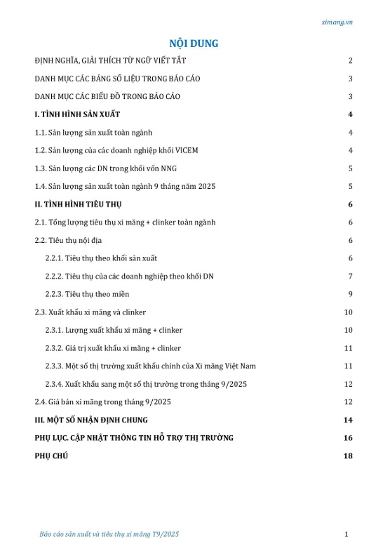 » NỘI DUNG BÁO CÁO TÌNH HÌNH SẢN XUẤT VÀ TIÊU THỤ XI MĂNG VIỆT NAM THÁNG 9/2025: xem TẠI ĐÂY.