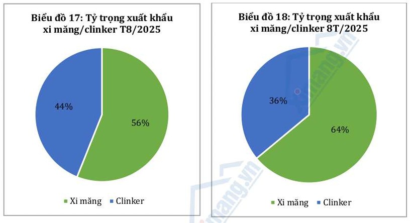 Lượng xuất khẩu tháng 8/2025 đạt khoảng 3,6 triệu tấn, tăng hơn 15% so với tháng 7. Trong đó clinker chiếm hơn 45% tổng lượng xuất, chủ yếu sang các thị trường Philippines, Bangladesh, Malaysia và châu Phi. Một số doanh nghiệp mở rộng xuất khẩu xi măng đóng bao sang các nước Đông Nam Á, nhờ chi phí vận chuyển thuận lợi.