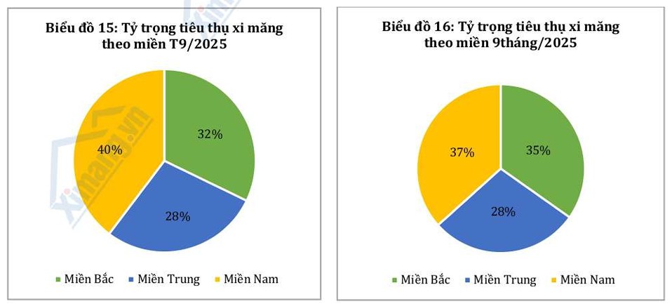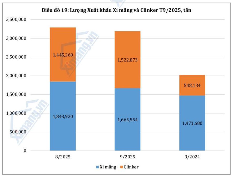 » Sau nhiều tháng ổn định, thị trường xi măng tháng 9/2025 ghi nhận đà giảm nhẹ ở cả sản xuất và tiêu thụ. Hoạt động xây dựng trong nước chậm lại do thời tiết bất lợi và tiến độ đầu tư công bị gián đoạn cục bộ. Dù vậy, nền sản xuất vẫn duy trì ổn định, xuất khẩu tiếp tục giữ vai trò hỗ trợ quan trọng cho toàn ngành.