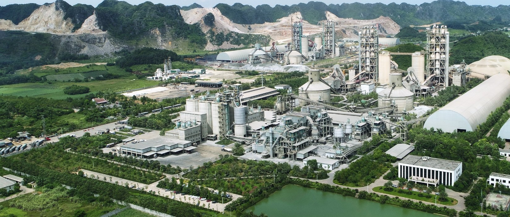 - Công suất thiết kế: Khoảng 2,3 triệu tấn xi măng/năm (tương đương 6.000 tấn clinker/ngày), công nghệ dây chuyền khô hiện đại, tự động hóa cao.